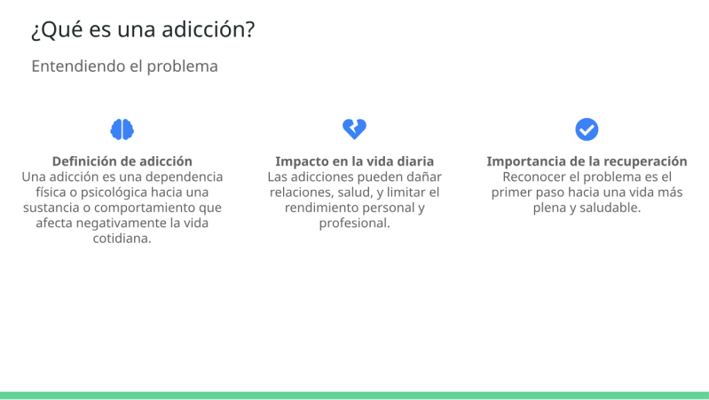 Salir de una adicción no es algo que se logre de un día para otro, pero con perseverancia, apoyo adecuado y compromiso, es posible recuperar el control de tu vida. Si necesitas orientación personalizada, busca un terapeuta o consejero especializado en adicciones.